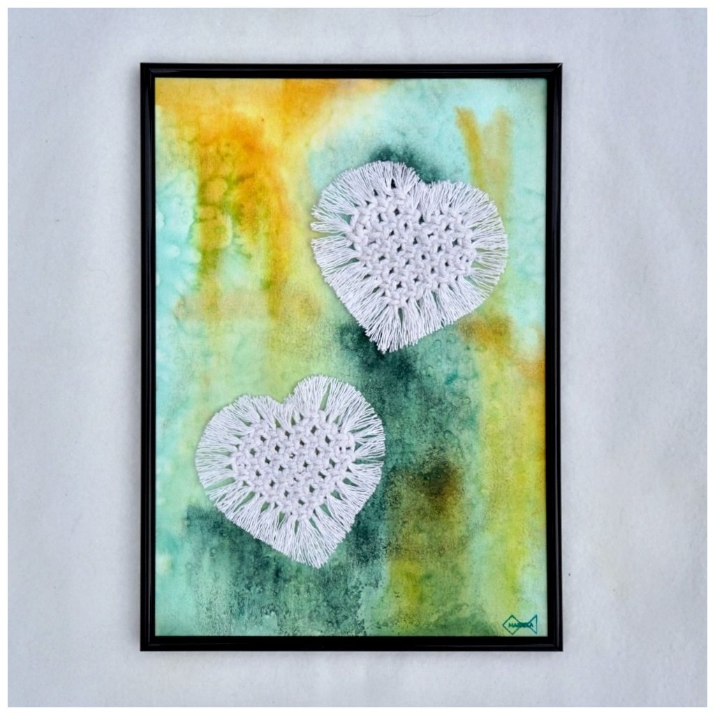 OBRAZ SE DVĚMA MAKRAMÉ SRDÍČKY